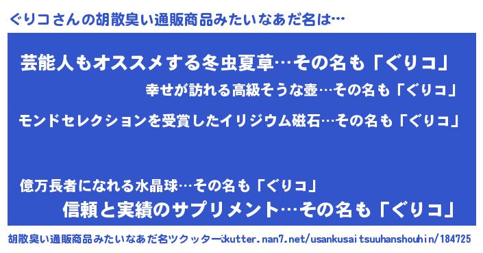 | ヒーロー風カッコイイあだ名 | 『慈愛の使者ぐりコ』『究極戦士グリコ』 |