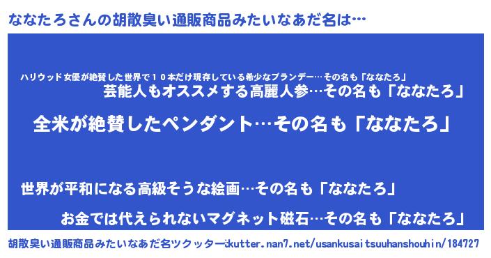 | 意味不明あだ名 | 『とにかく怪しいななたろ』 |
