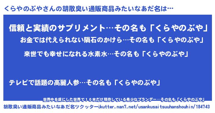 | 意味不明あだ名 | 『永久保存くらやのぶや』 |