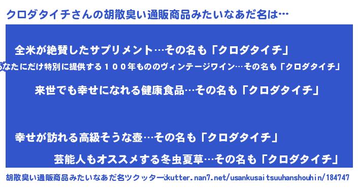 | ヘコむあだ名 | 『クロダタイチ(笑)』『クロお』 |