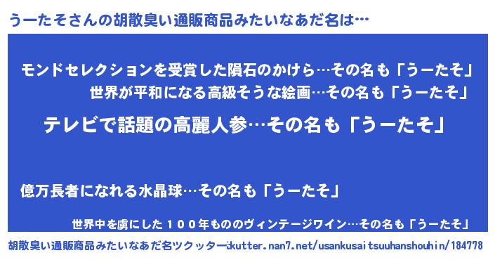 | 意味不明あだ名 | 『自称うーたそ』『うーたそフォーエバー』 |