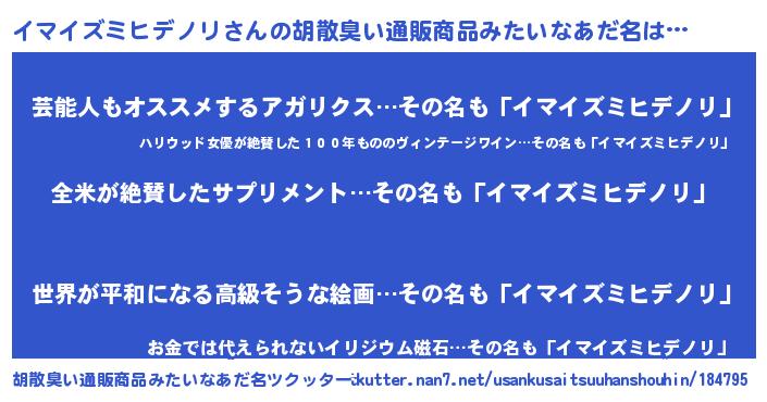 | 欧米人風あだ名 | 『トリンドルイマイズミヒデノリ』 |