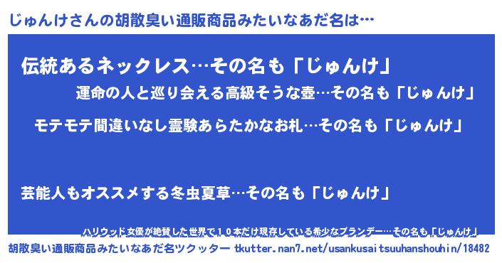 | 欧米人風あだ名 | 『マイケルじゅんけ』『ウサインじゅんけ』 |