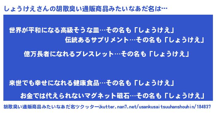 | ヘコむあだ名 | 『しょにー』『豆乳』『しょお』 |