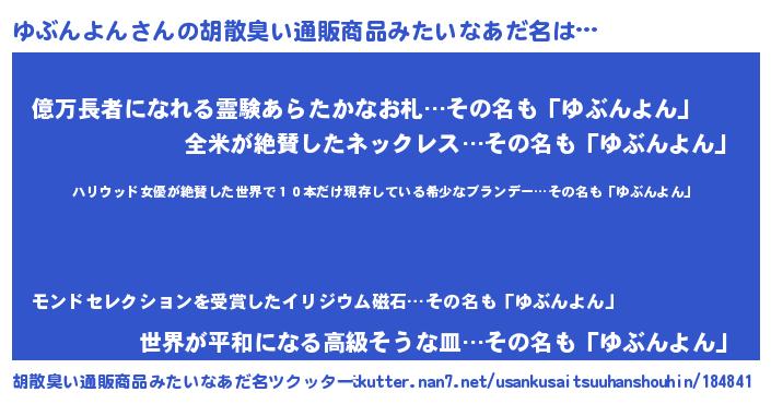| 意味不明あだ名 | 『住所不定無職ゆぶんよん(84歳)』 |