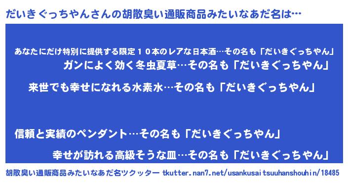 | 意味不明あだ名 | 『永久保存だいきぐっちやん』 |