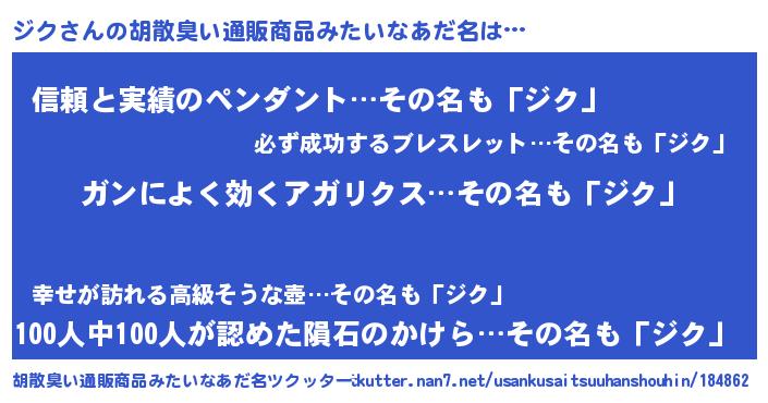 | 意味不明あだ名 | 『自称ジク』『とにかく怪しいジク』 |