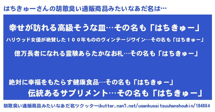 | ヒーロー風カッコイイあだ名 | 『スーパーハチキュー』『銀牙騎士ハチ』 |