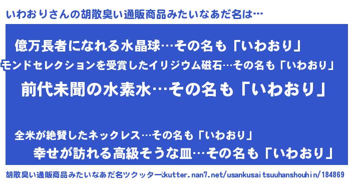 | ヘコむあだ名 | 『いわおり(遠い目)』『いわもー』 |