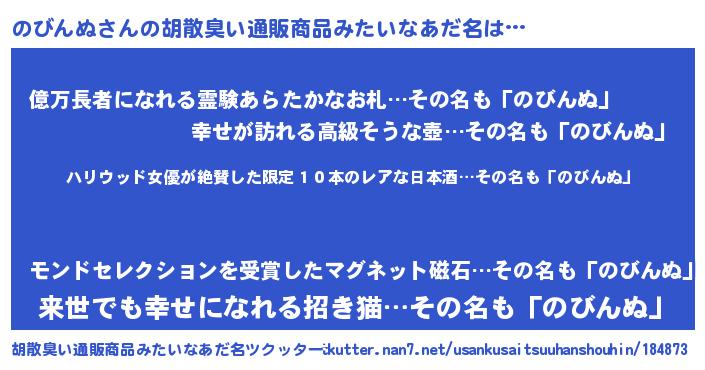 | 男性向けラノベタイトル風あだ名 | 『魔弾の王とのびんぬ』『のびんぬの憂鬱』 |