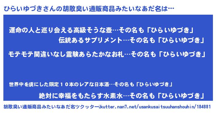 | 恥ずかしいあだ名 | 『プリティーひらいゆづき』『ひらっちょ』 |