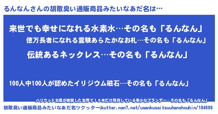 | ヘコむあだ名 | 『るん太郎』『るんなん(遠い目)』 |