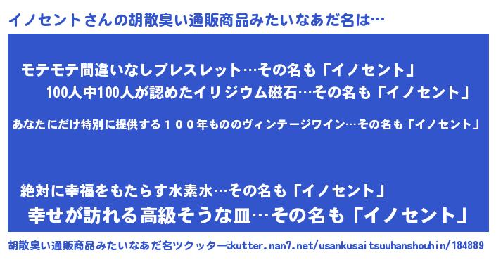 | ヒーロー風カッコイイあだ名 | 『仮面イノダー』『スーパーイノセント』 |
