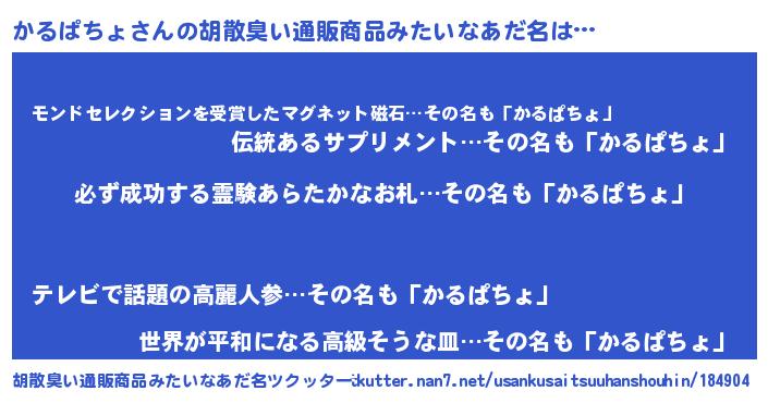 | 意味不明あだ名 | 『ペロリンかるぱちょ』『自称かるぱちょ』 |