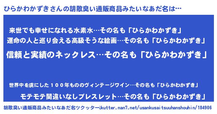 | ヘコむあだ名 | 『ひらっぺ』『ひらかわかずき(震え声)』 |