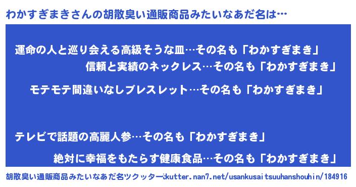 | 肩書あだ名 | 『わかすぎまきCEO』『わかすぎまき校長』 |