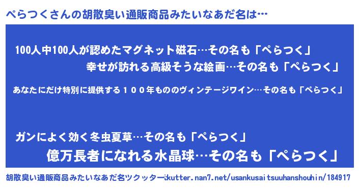 | ヒーロー風カッコイイあだ名 | 『仮面ペラダー』『天空の使者ぺらつく』 |
