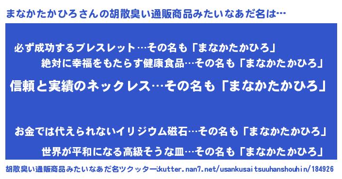 | 意味不明あだ名 | 『とにかく怪しいまなかたかひろ』 |