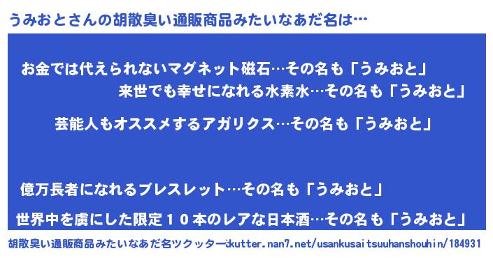 | 意味不明あだ名 | 『自称うみおと』『永久保存うみおと』 |