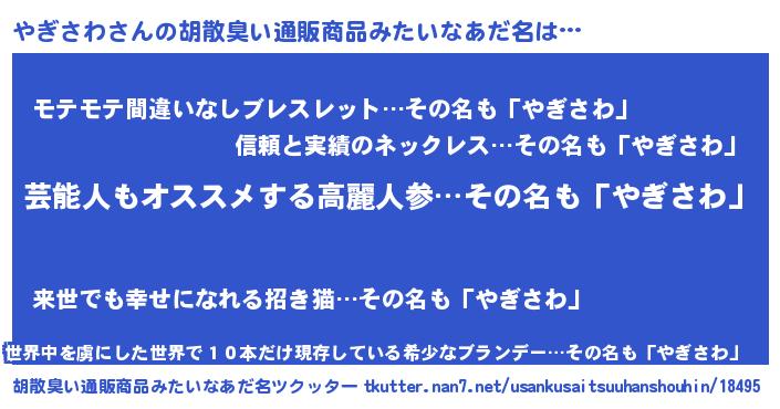 | 意味不明あだ名 | 『つくし科やぎさわ属』『自称やぎさわ』 |