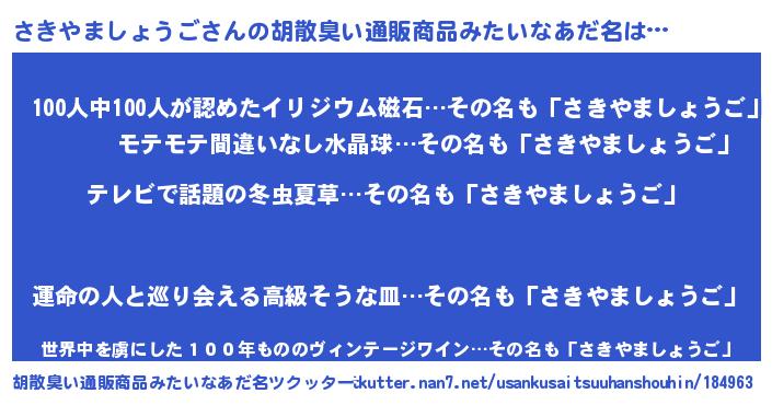 | 意味不明あだ名 | 『自称さきやましょうご』 |