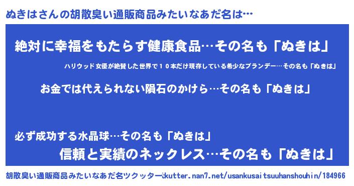 | ヒーロー風カッコイイあだ名 | 『愛の使者ぬきは』『ネオヌキハ』 |