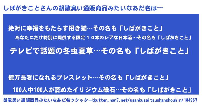 | ヘコむあだ名 | 『しばがきこと(震え声)』『しばにー』 |