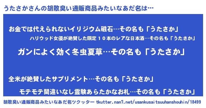女子向けラノベタイトル風あだ名 | 『うたさかなんてお断りですっ。』 |