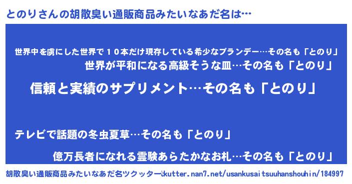 とのりさんの胡散臭い通販商品みたいなあだ名をツクッター!