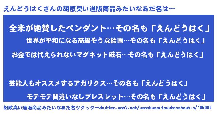 | 意味不明あだ名 | 『眠気覚ましガムえんどうはく味』 |