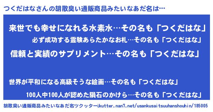 | 意味不明あだ名 | 『とにかく怪しいつくだはな』 |