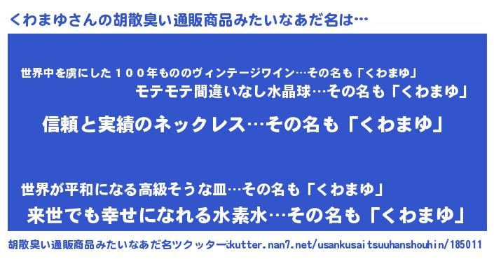 | 意味不明あだ名 | 『とにかく怪しいくわまゆ』 |