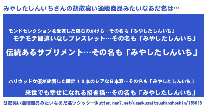 | 意味不明あだ名 | 『とにかく怪しいみやしたしんいち』 |