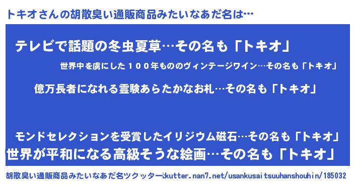 | 男性向けラノベタイトル風あだ名 | 『トキオアートオンライン』 |