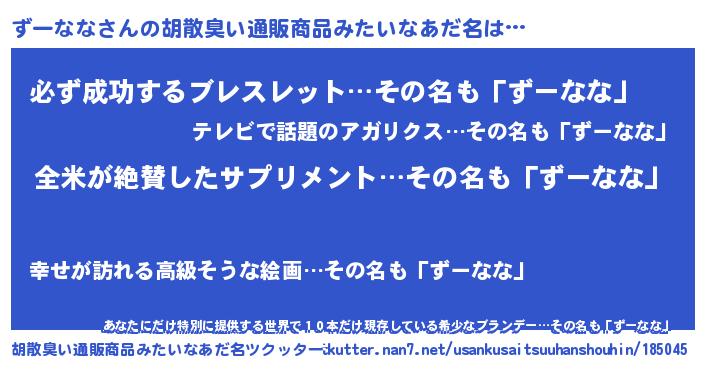| 意味不明あだ名 | 『とにかく怪しいずーなな』 |