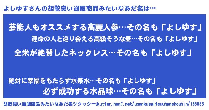 | 肩書あだ名 | 『よしゆすディレクター』『よしゆす団長』 |