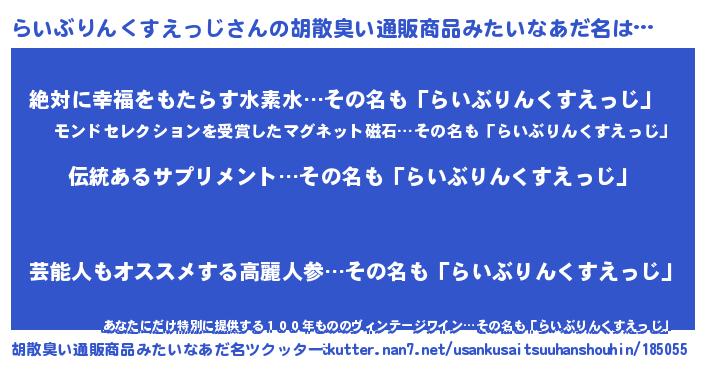 | ヘコむあだ名 | 『らいを』『らいぶりんくすえっじ(遠い目)』 |