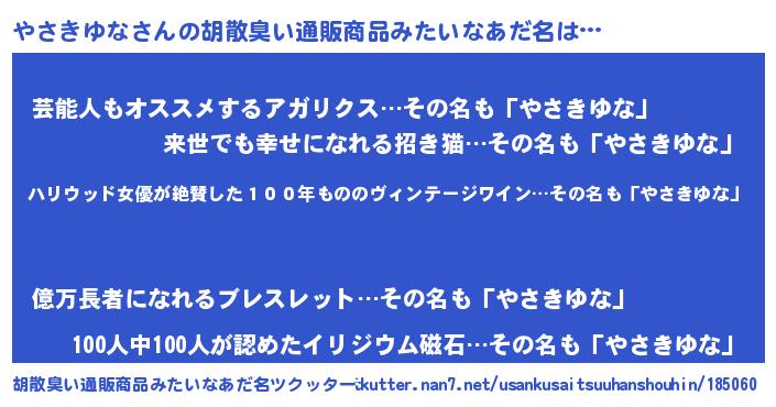 | 意味不明あだ名 | 『住所不定無職やさきゆな(11歳)』 |