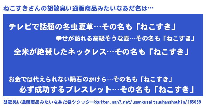 | 恥ずかしいあだ名 | 『ネコリンリン』『ネコスキデラックス』 |