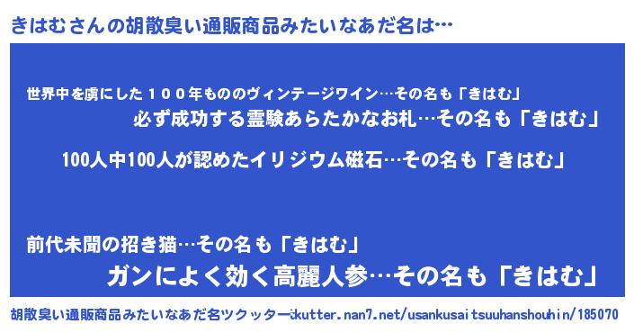 | 男性向けラノベタイトル風あだ名 | 『緋弾のキハム』『はたらくきはむさま!』 |