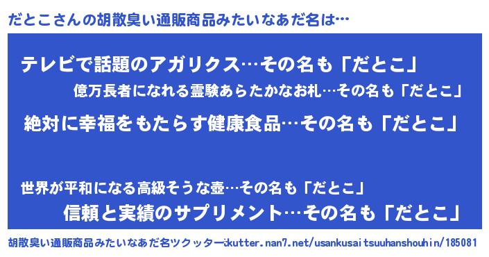 | ヘコむあだ名 | 『だとこ(笑)』『だとっ子』 |
