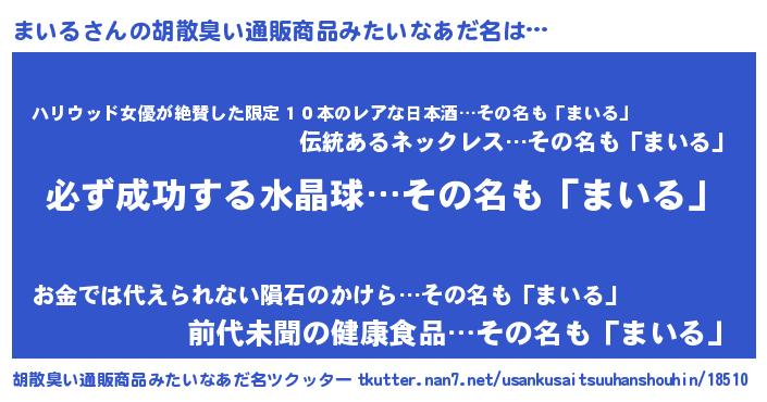 | ヘコむあだ名 | 『まいにゅー』『まいる(震え声)』 |