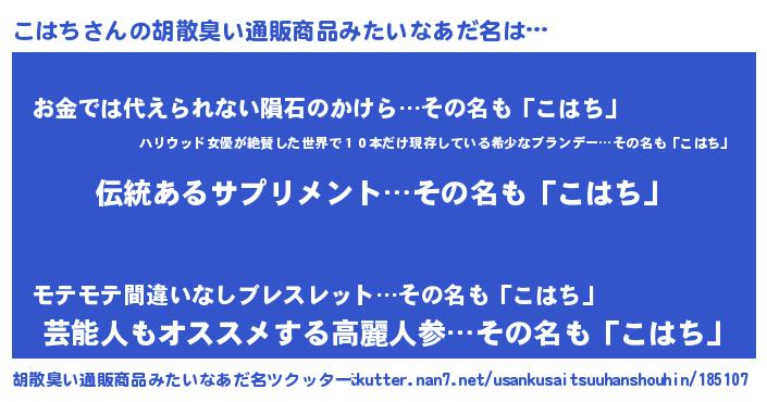 | 意味不明あだ名 | 『もやし科こはち属』『自称こはち』 |
