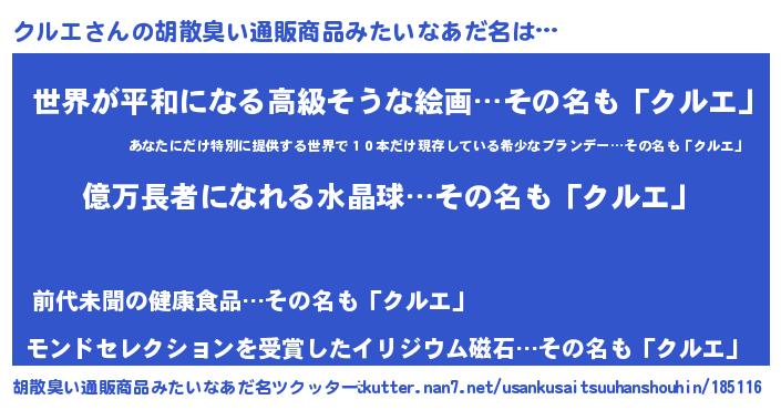| ヒーロー風カッコイイあだ名 | 『スーパークルエ』『ウルトラクルエマン』 |