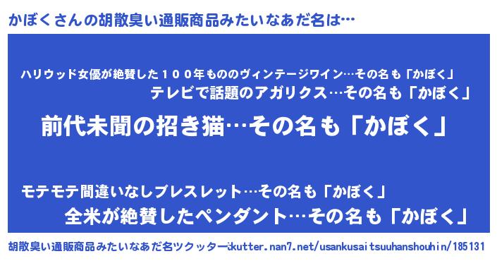 | ヘコむあだ名 | 『かぼく(小並感)』『かぼ太郎』 |