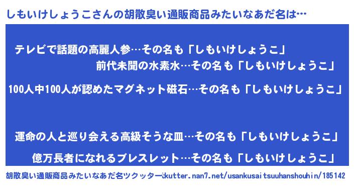 | ヘコむあだ名 | 『しもにー』『しもいけしょうこ(笑)』 |