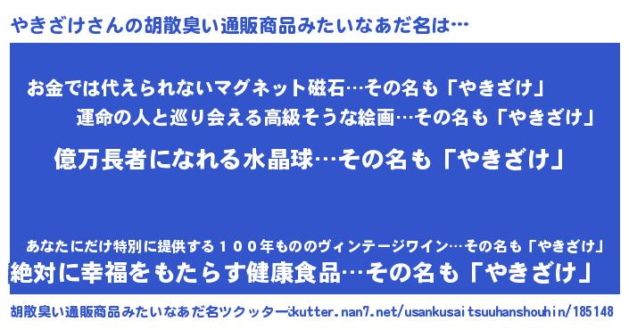 | ヘコむあだ名 | 『やきもー』『やきざけ(笑)』 |