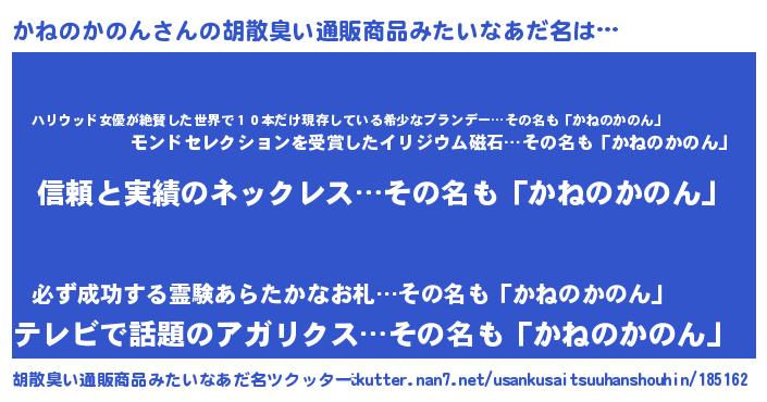 かねのかのんさんの胡散臭い通販商品みたいなあだ名をツクッター!