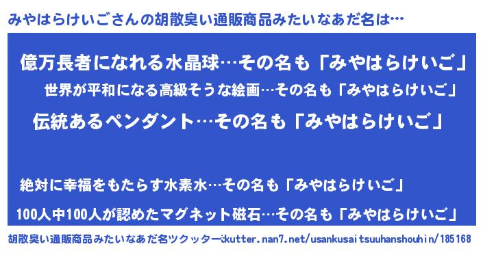 | 意味不明あだ名 | 『とにかく怪しいみやはらけいご』 |