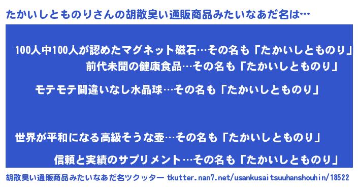 | ヘコむあだ名 | 『たかにゅー』『たか太郎』 |